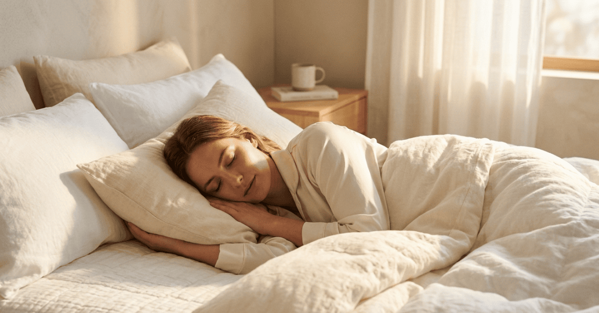 Massage therapy has been shown to improve sleep quality by reducing nervous system hyperarousal and physical tension. Research suggests massage can increase delta brain waves associated with deep sleep and relaxation (https://www.sciencedirect.com/science/article/abs/pii/S0965229910000419).